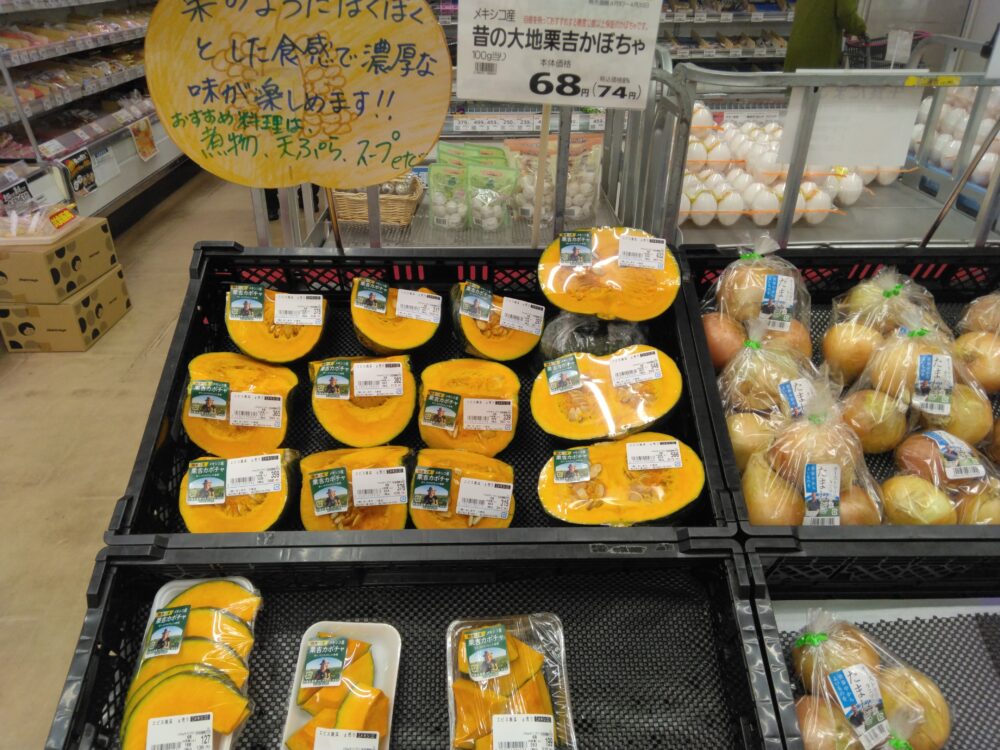 今日のおすすめは栗吉かぼちゃです。栗のようにほくほくして濃厚な味です。天ぷら、煮物、スープなどにどうぞ!