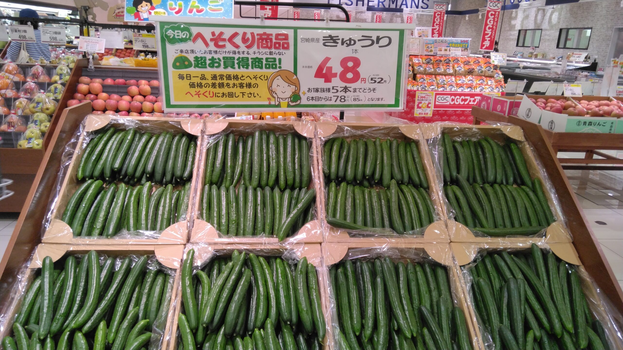 東川津店本日のへそくり商品はきゅうりです。気温も高くなってきたのでサラダやたたききゅうりなどにいかがでしょうか?