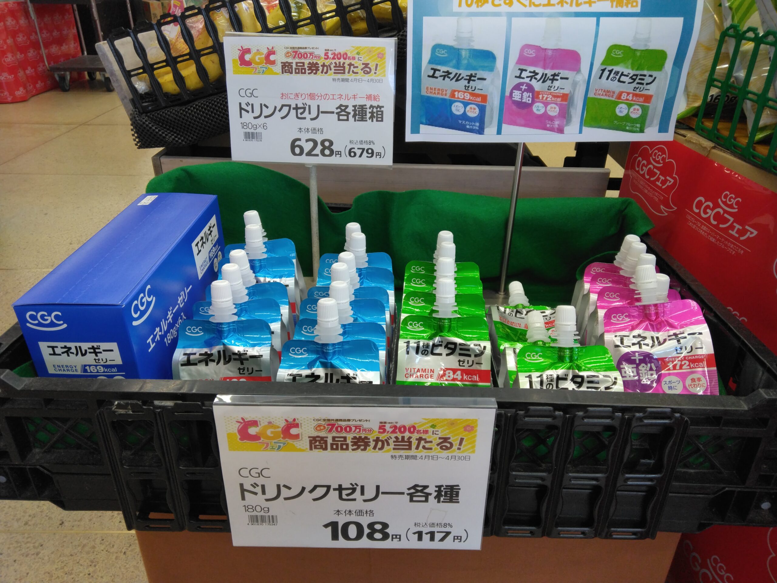 今日のおすすめは、CGCドリンクゼリーです。忙しい時のエネルギー補給にいかがでしょうか、まとめ買いがお買い得です。ぜひお買い求めくださいませ。