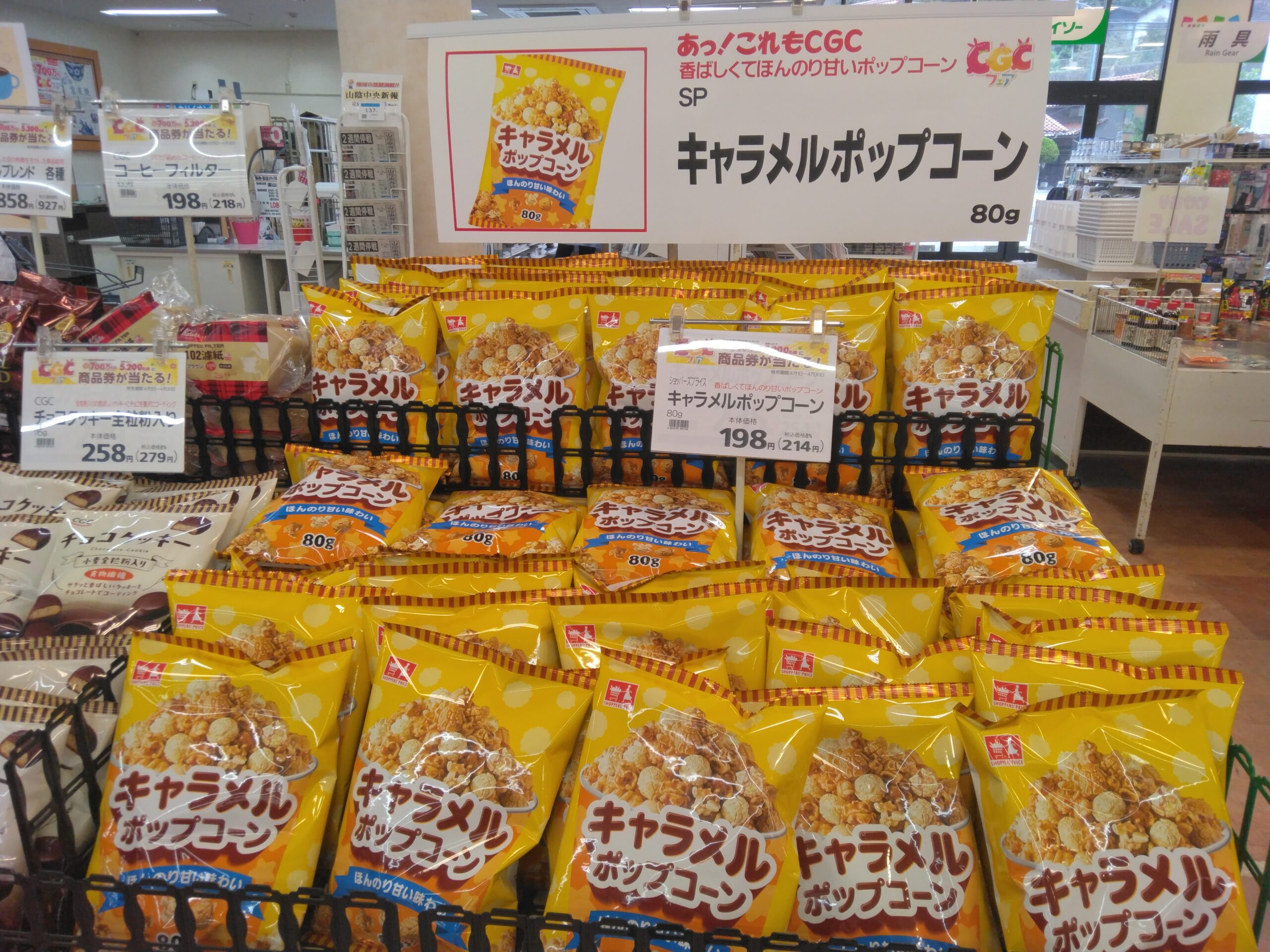 こんにちは、楽山店です。今月CGCフェアの中から菓子担当者がオススメするのは『キャラメルポップコーン』です。ポップコーンのあのカルッサクッはそのままで、キャラメルがまとっていて甘さは控えめなので、ついつい食べ過ぎちゃう♪そんなポップコーンです! 是非この機会にお試し下さいませ。
