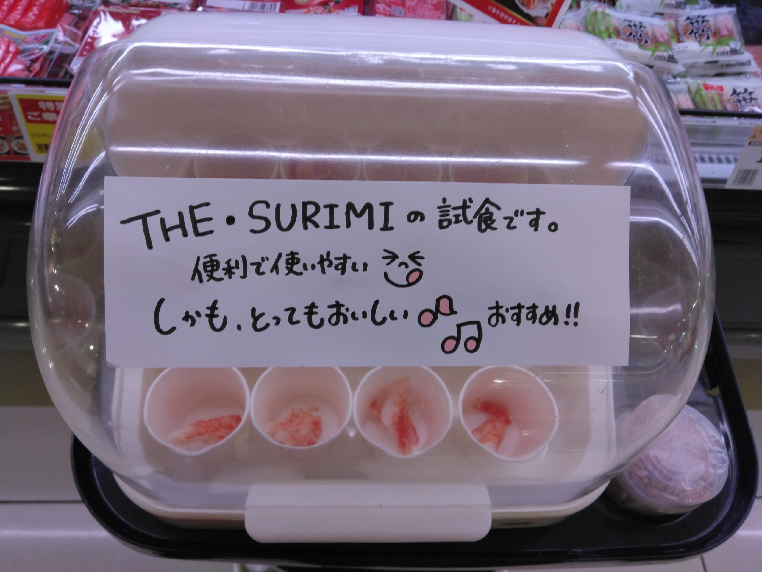 こんにちはみしまや雲南三刀屋店です。 本日のおすすめはスリミ! よくあるカニカマとはひと味違います。 かにの風味が一段上です。 試食もご準備しておりますので、ぜひお買い求め下さいませ!