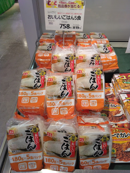 こんにちは、中央店です。SPおいしいごはん5食が今月お買い得です。国産米ブレンドで年間を通して安定した美味しさでおすすめです。是非、お立ち寄りお買い求めくださいませ。