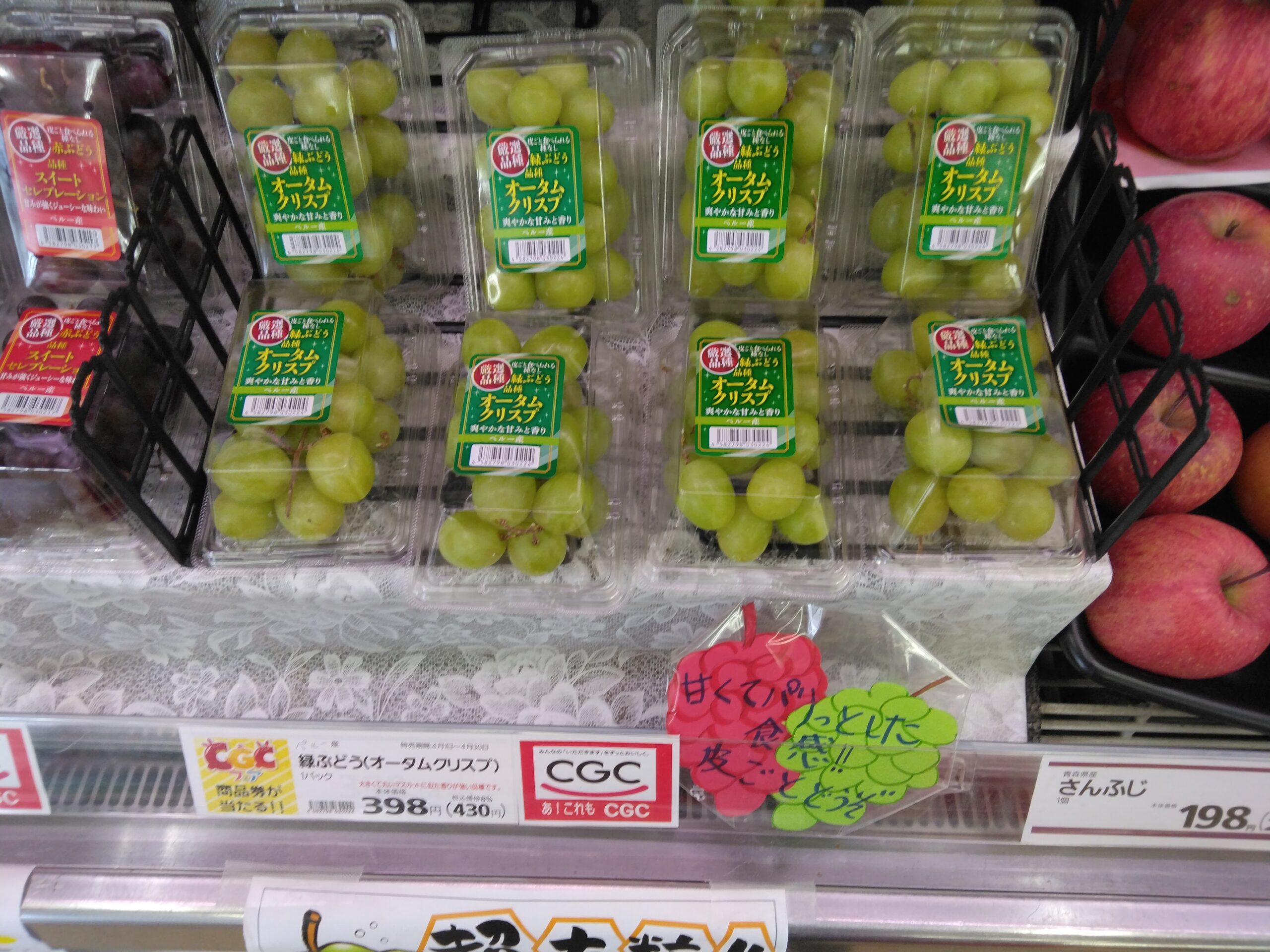 今日のおすすめはみどりぶどうです。粒も大きく皮ごと食べれます!パリパリ食感で濃厚な味わいをお楽しみ下さい。