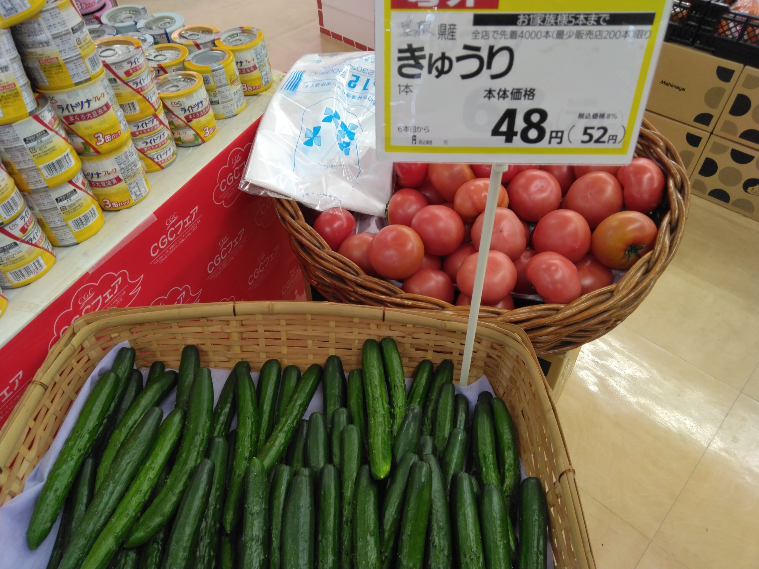 本日はきゅうりがお買い得です。サラダ、酢の物にどうぞ!その他、本日は号外で特売商品を多数用意しております。是非ご来店下さい!