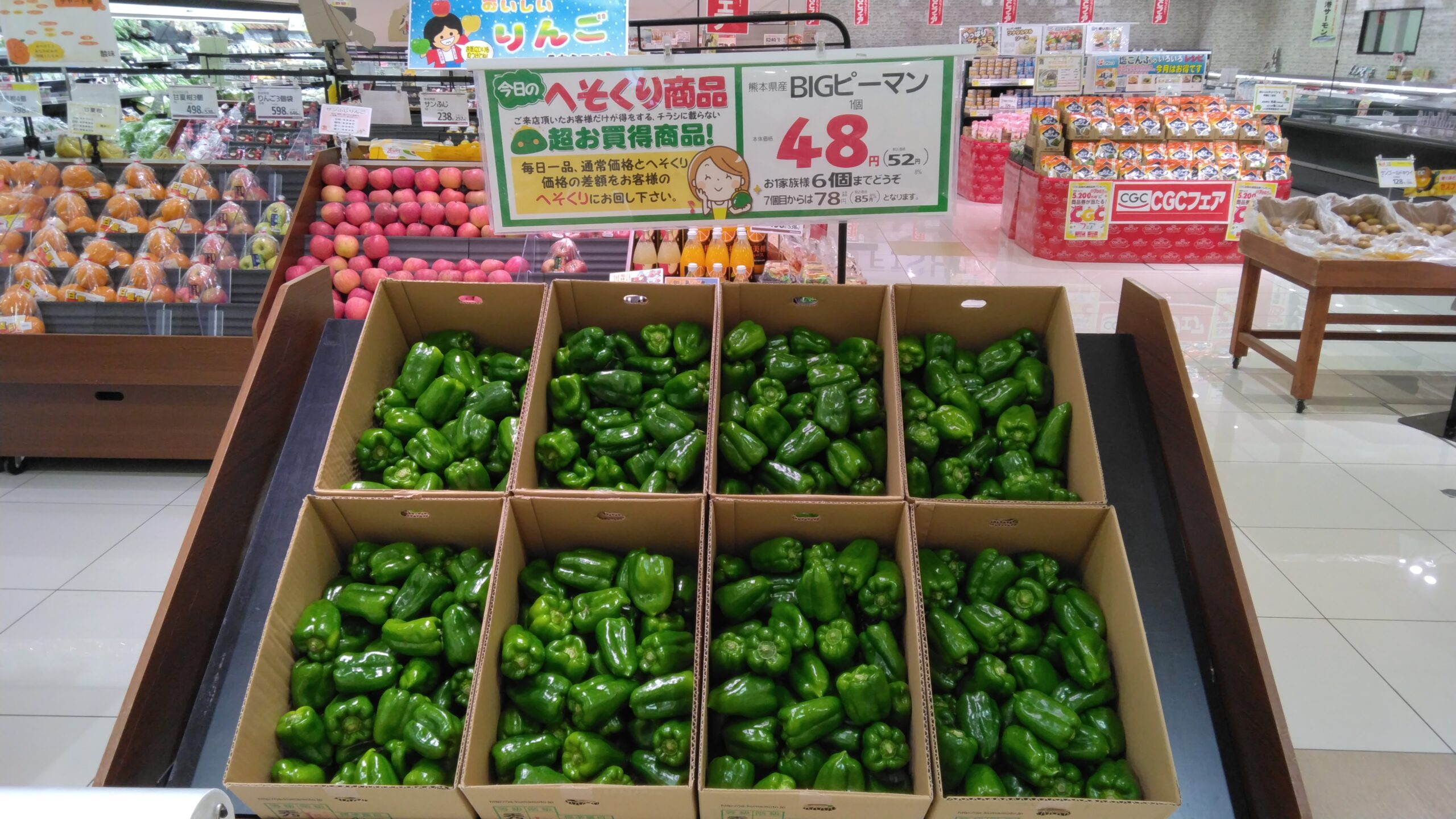 みしまや東川津店農産部門の本日のおすすめは【ビッグピーマン】です!炒め物や肉詰め、おひたしなどにいかがでしょうか。この機会にぜひともお買い求めくださいませ!