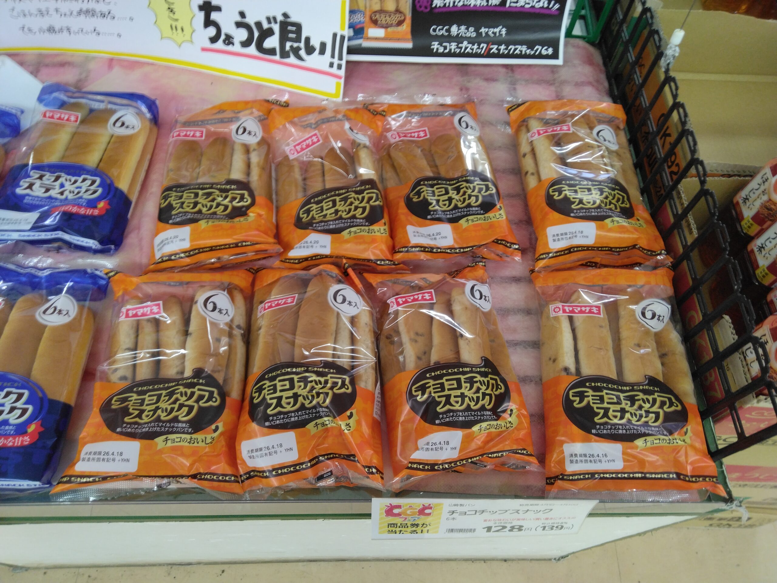 本日のおすすめはチョコチップスナックです。ちょっと小腹のすいた時や、コーヒータイムにいかがでしょうか?子供から大人まで食べやすいサイズです!