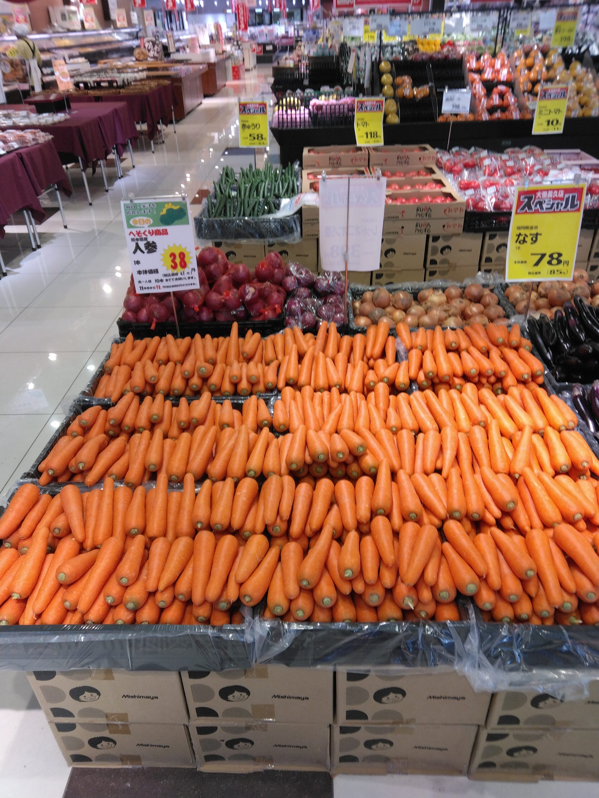 本日は人参がお買い得です。ナムルやキンピラ、サラダ、炒め物など色鮮やかな一品にどうぞ。