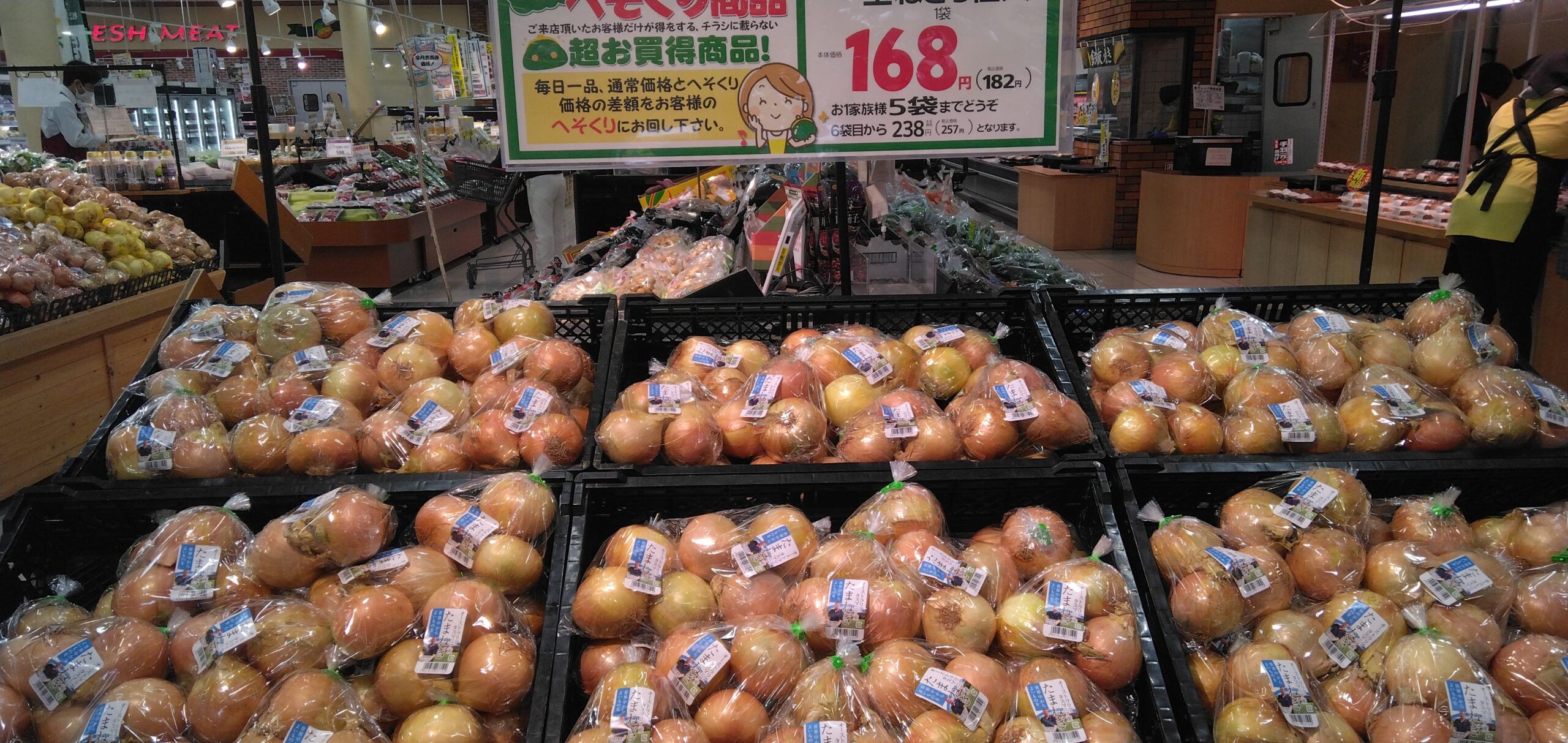みしまや田和山店農産部門です。本日のおすすめはオーストラリア産の玉ねぎ3個入り袋です!味噌汁の具や炒め物などにピッタリです!ぜひみしまや田和山店でお買い求めくださいませ。