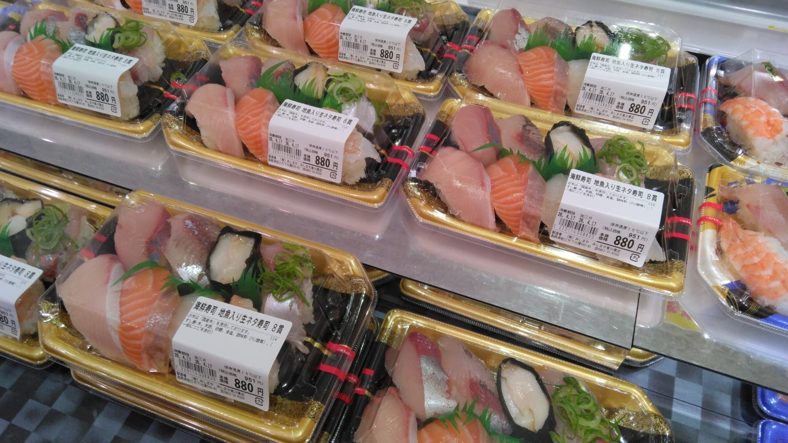 こんにちは!みしまや東川津店鮮魚コーナーです!本日のおすすめは地元のネタを使ったお寿司盛り合わせです!ここでしか食べられない旨味となっております!ぜひお買い求めくださいませ!