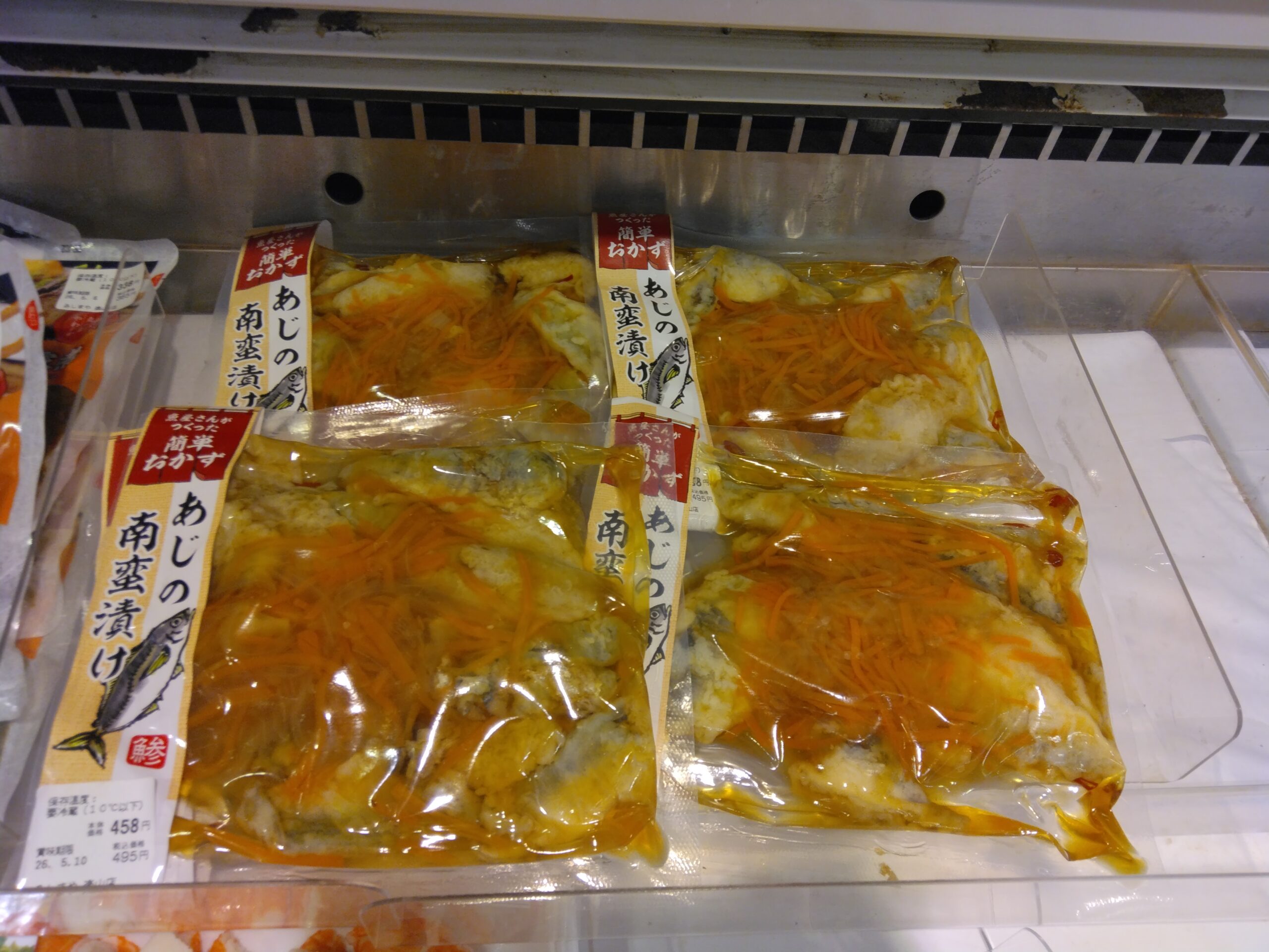 おはようございます!みしまや楽山店鮮魚です。本日のおすすめは、あじの南蛮漬けです。昨日に引き続き、試食を出しております。暑いと感じる日が増えてきた今日この頃。サッパリとした南蛮漬けはいかがでしょうか。458円(税込495円)です。ぜひお買い求め下さいませ!