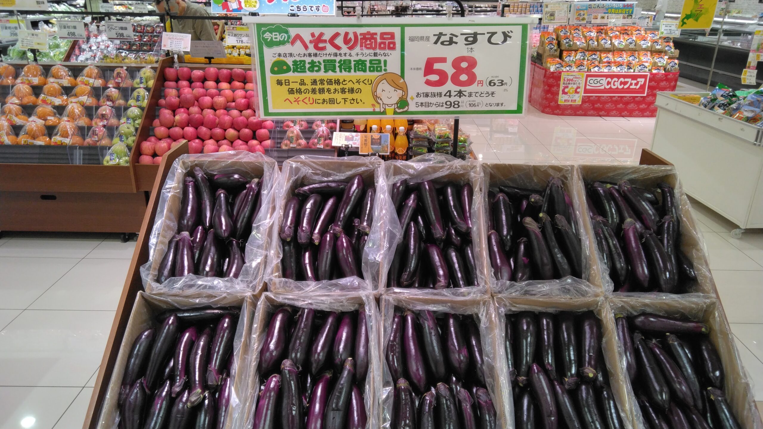 みしまや東川津店農産部門の本日のおすすめは【なすび】です!炒め物や揚げ焼きにしてもおいしいです!この機会にぜひともお買い求めくださいませ!