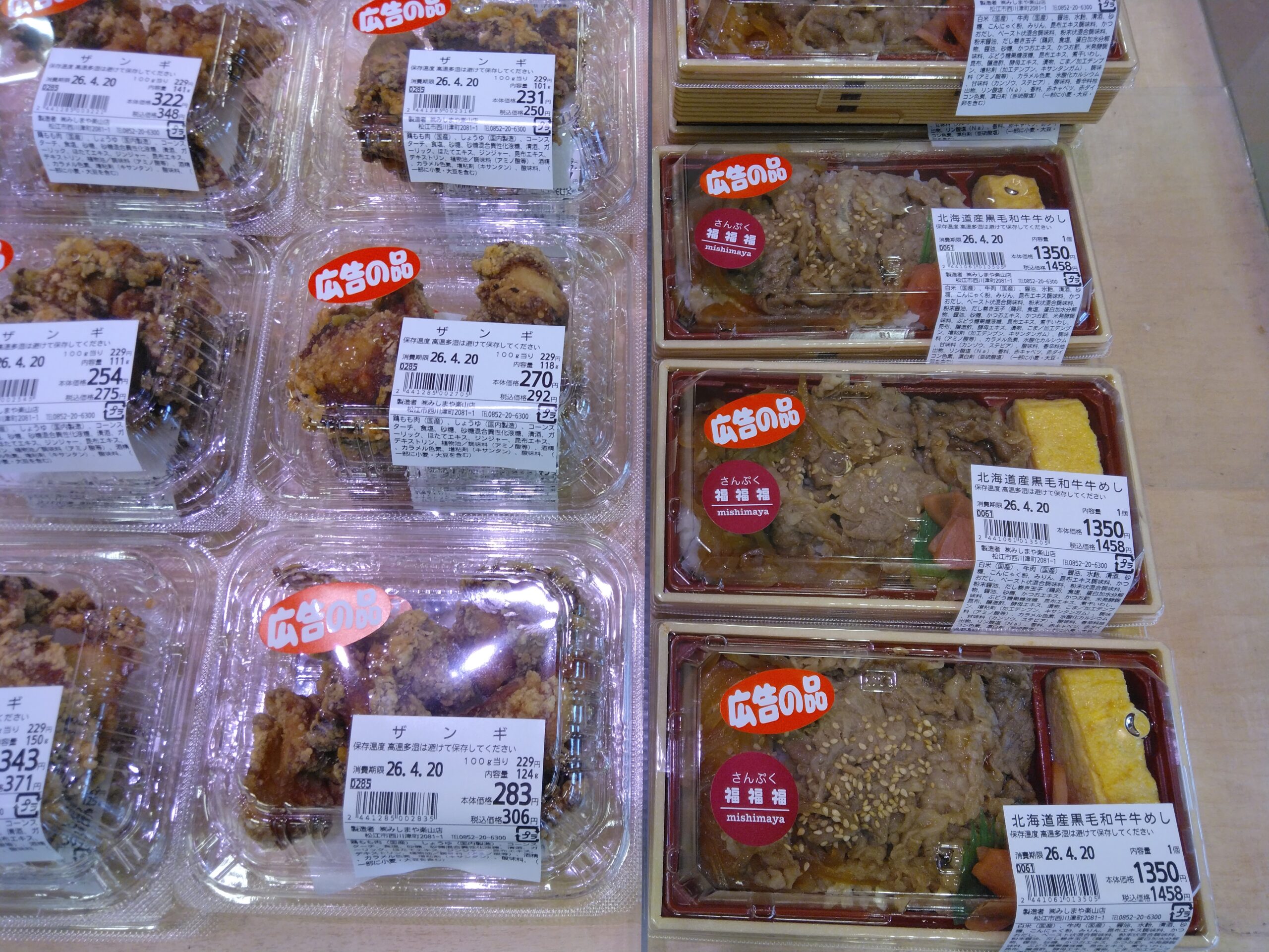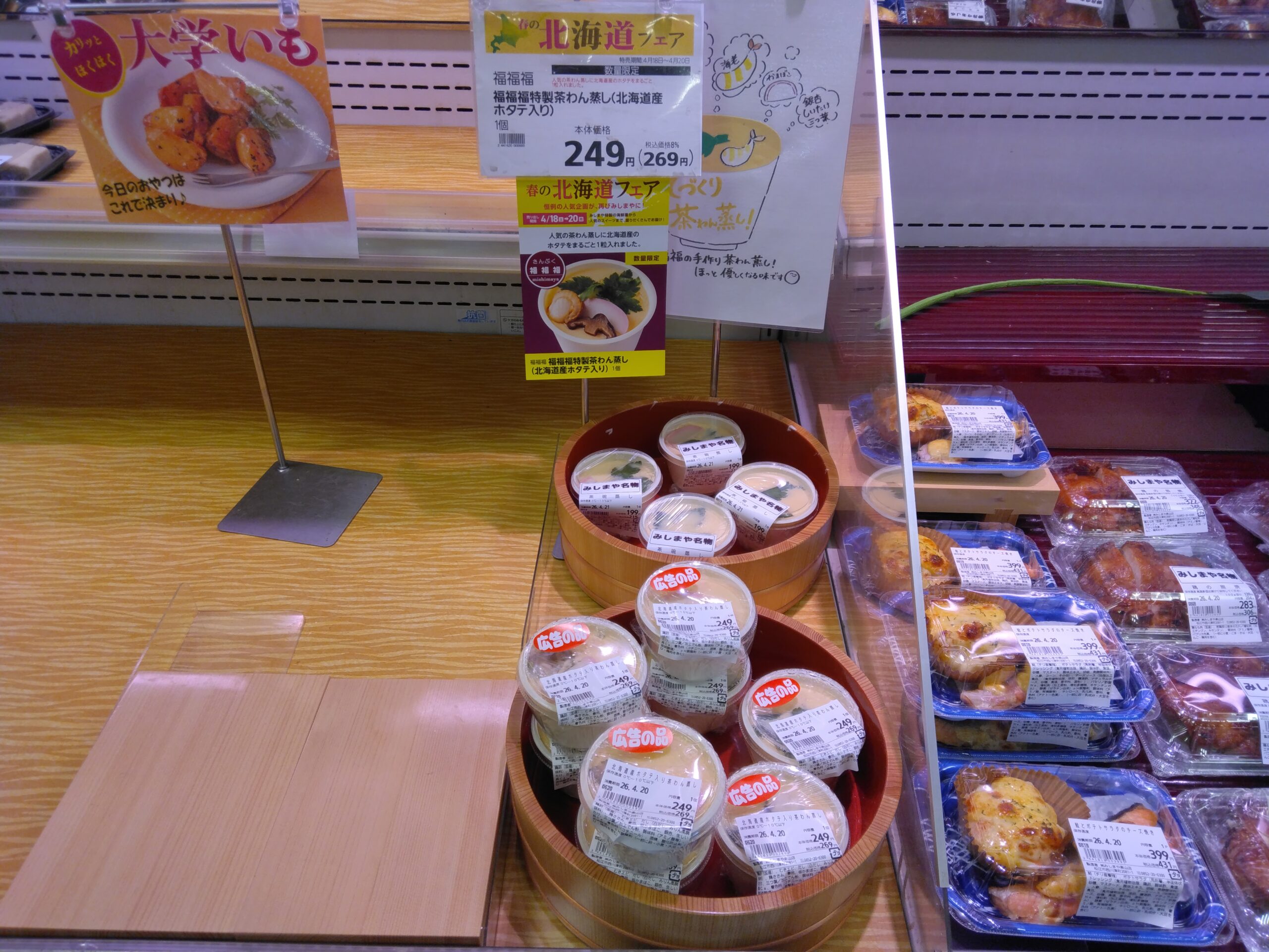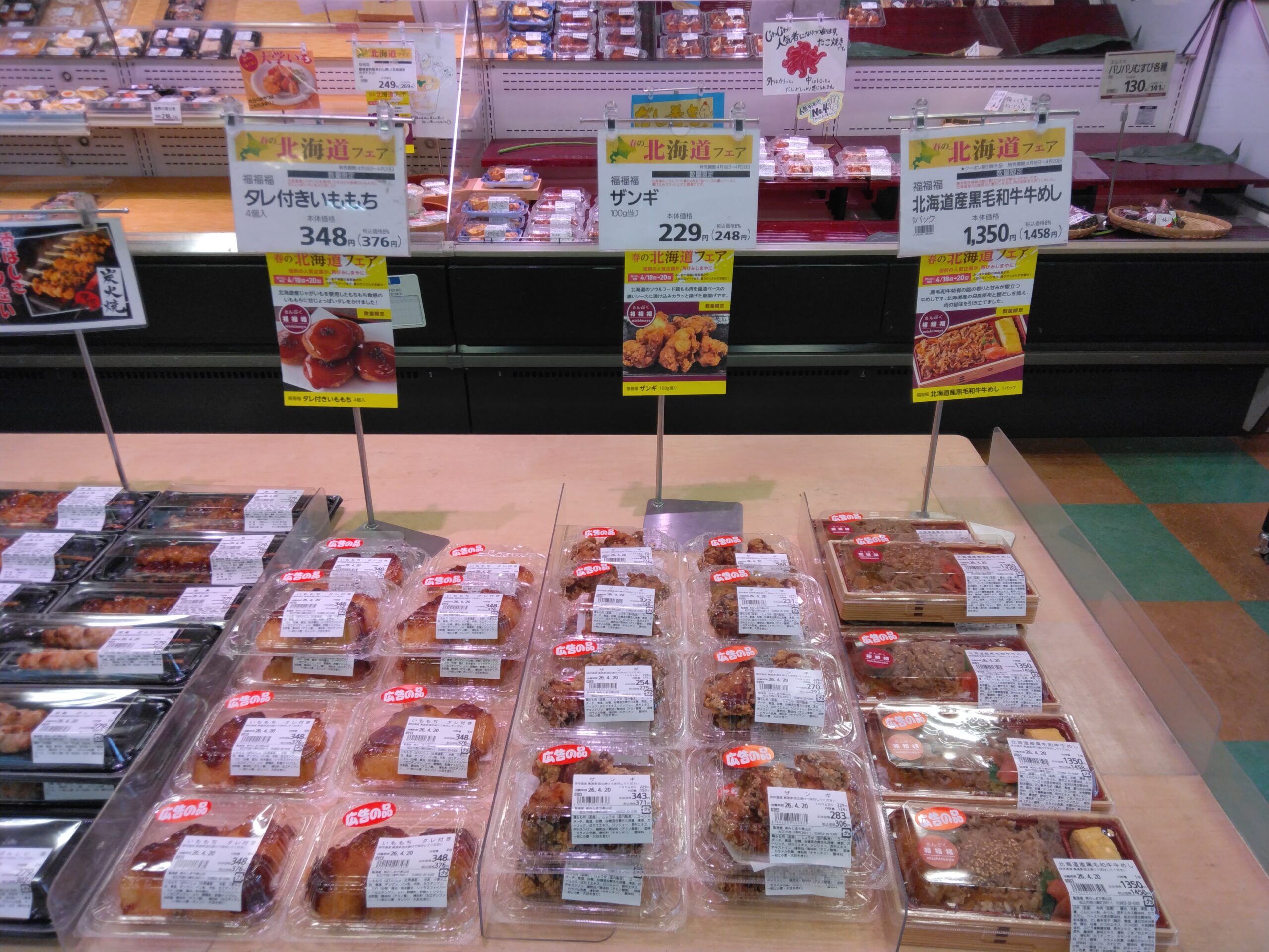 今日は北海道フェア最終日! さんぷくでは、北海道産黒毛和牛牛めしを始め、前回も人気だったザンギ、北海道産ホタテ入り茶碗蒸しなど取り揃えております。 今日が最終日の北海道フェア。 是非この機会にお買い求め下さいませ。