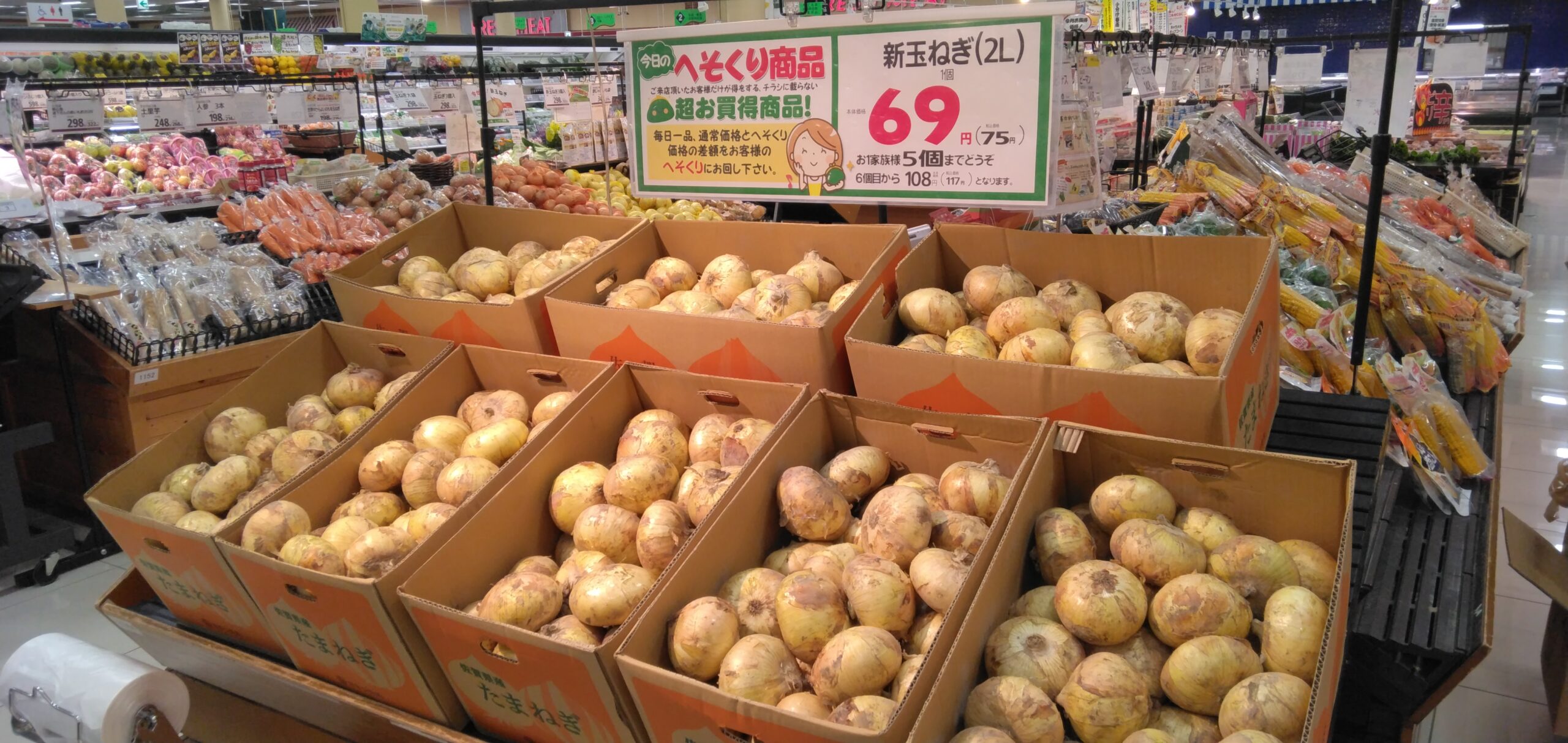 こんにちは、みしまや田和山店農産からのおすすめは【新玉ねぎ】です。大玉サイズがお買い得ですよ。新玉ねぎだから水にさらしてサラダや煮込めば甘みがしっかりですよ!是非みしまや田和山店にお買い求めくださいませ。
