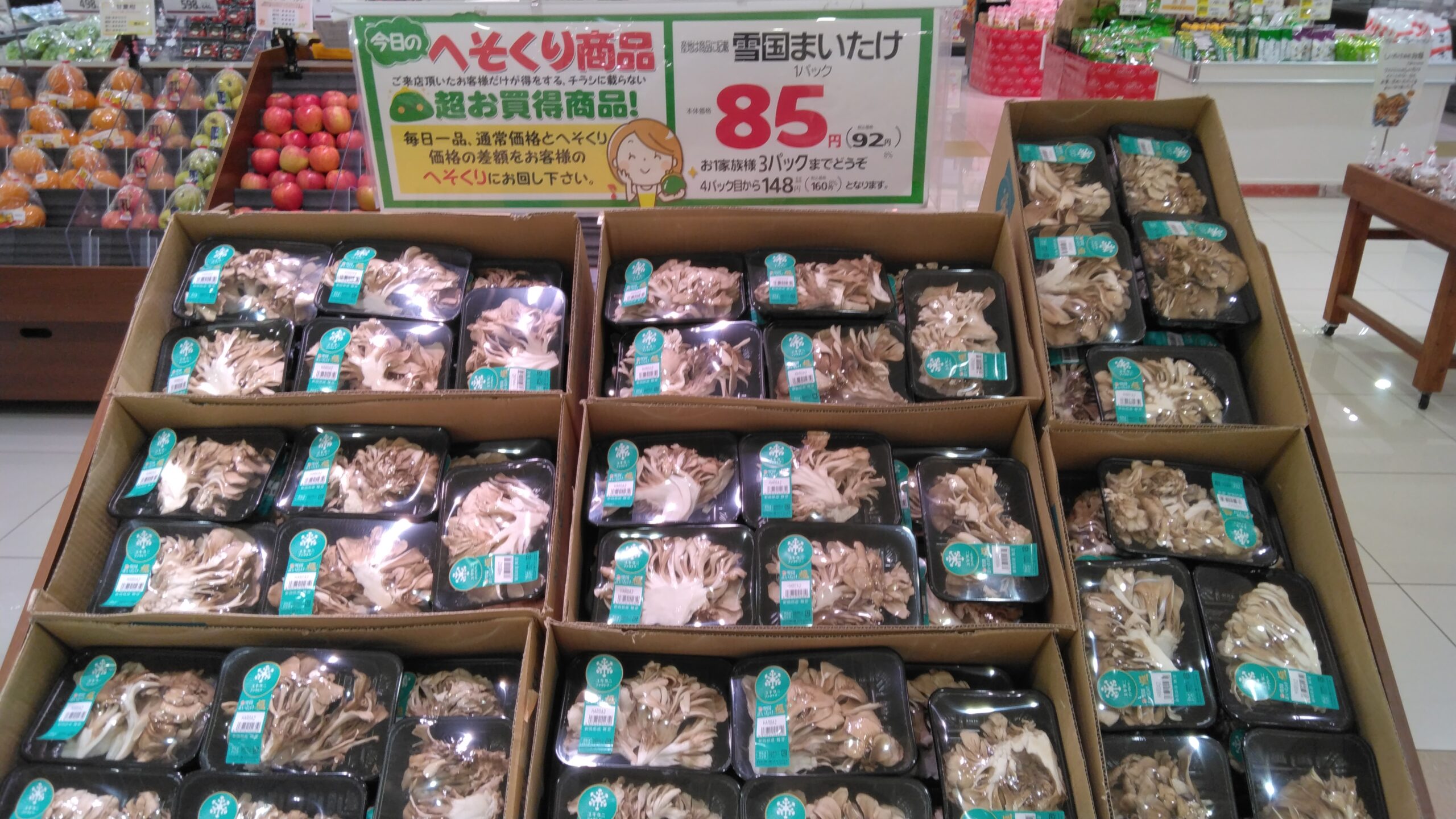 みしまや東川津店農産部門の本日のおすすめは【雪国まいたけ】です!天ぷらやバター醤油炒めなどにいかがでしょうか。この機会にぜひともお買い求めくださいませ!
