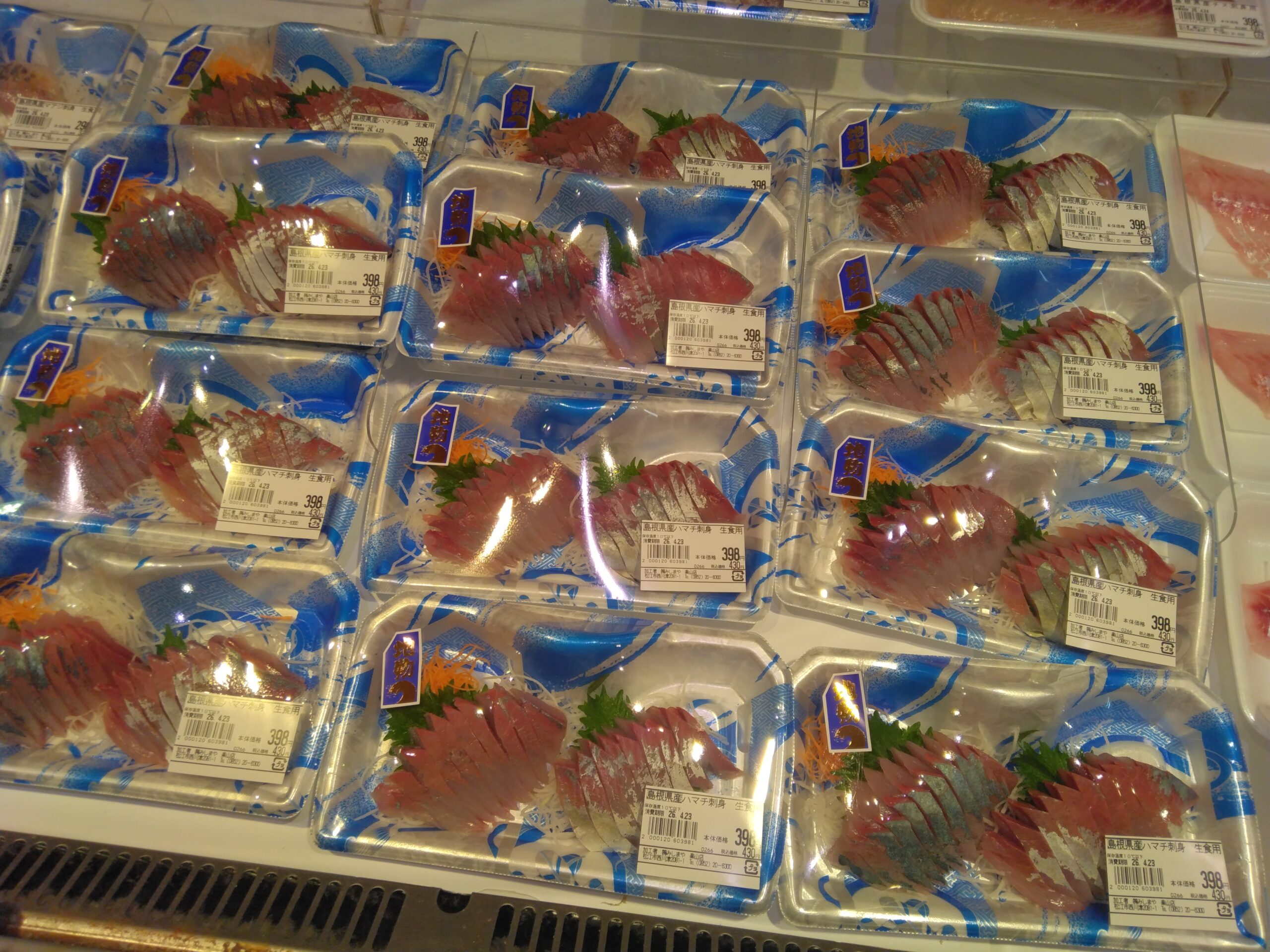 みしまや楽山店鮮魚です。本日のオススメはハマチのお刺身!地物のハマチを使って作っています。ここ最近でハマチも入荷量が多くなってきていて、他県産が多かったですが地物のものが入るようになりました。価格も他県産と比較的と安めでお買い求めやすくなっています。是非この機会にお買い求め下さいませ。