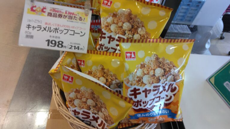 おはようございます。お花見のお供にショッパーズプライスのキャラメルポップコーンいかがでしょうか。ほんのり甘い味わい美味しいですよ。是非お買い求め下さいませ。