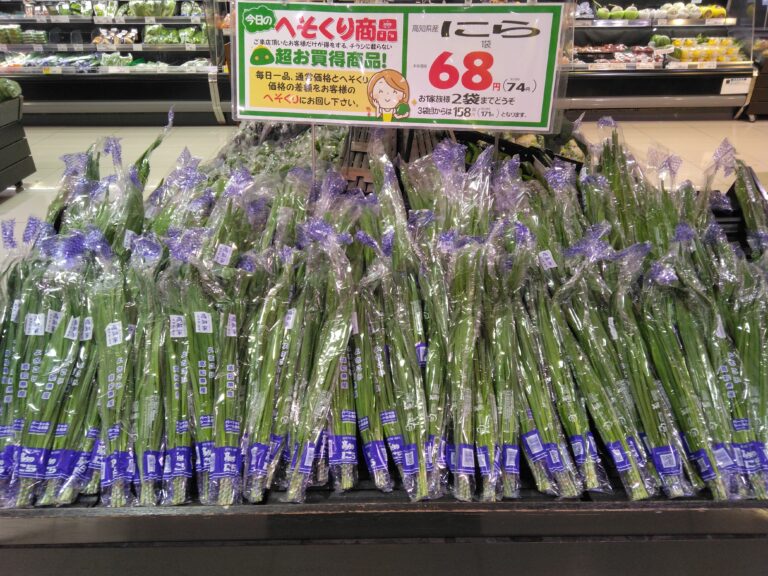 みしまや春日店農産からのおすすめ品は【にら】です。今日は、チヂミやレバニラ炒めなどにしませんか?是非お買い求めくださいませ。