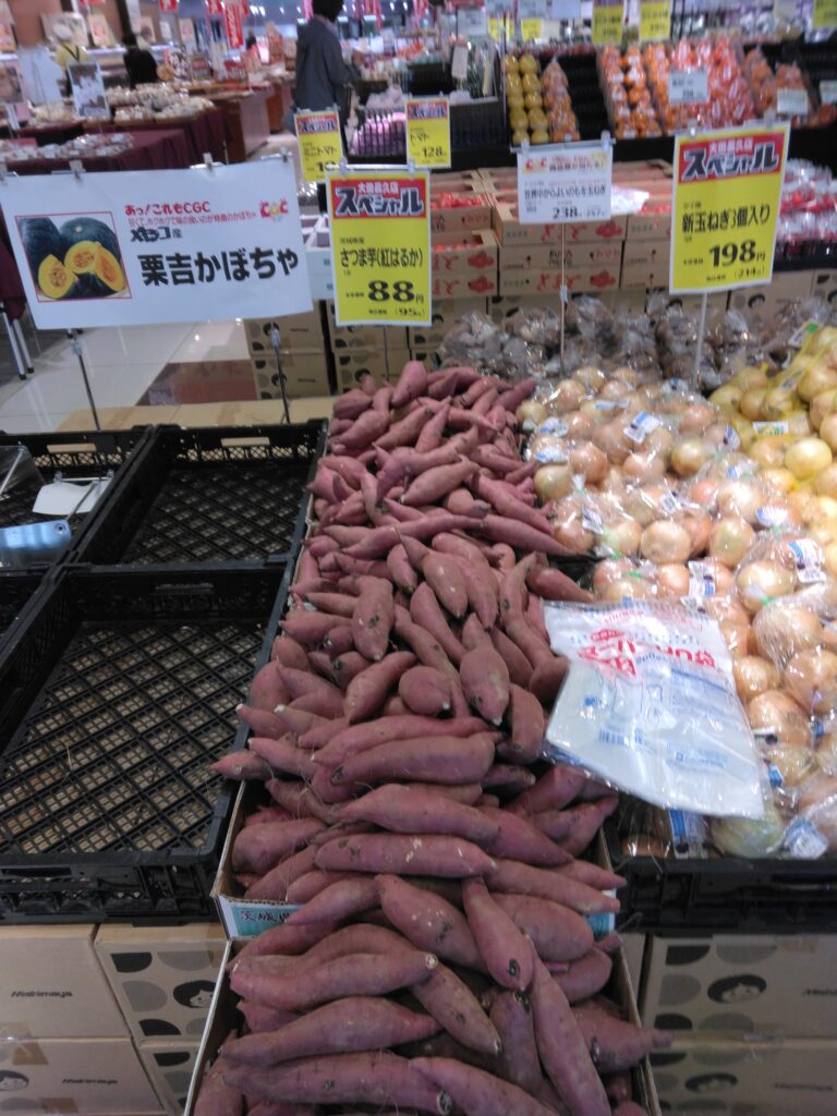 本日はさつま芋がお買い得です。天ぷらや煮物、大学芋などにどうぞ。