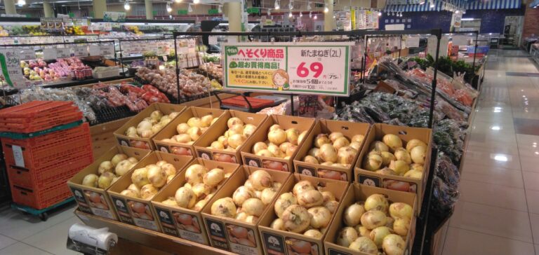 こんにちは、みしまや田和山店の農産部門です。今日のおすすめは、新玉ねぎです。ぜひ、ご利用くださいませ。