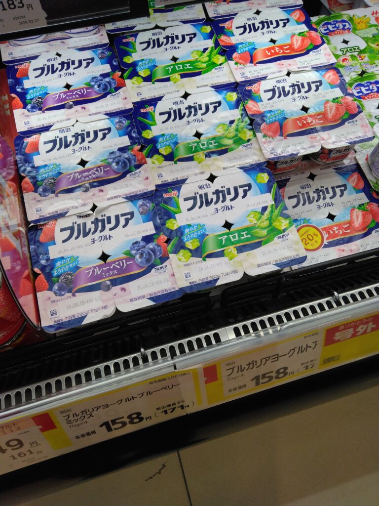 春日店です。本日のおすすめはブルガリアヨーグルトです。号外でお買い得となっております。ぜひ、お買い求めくださいませ。