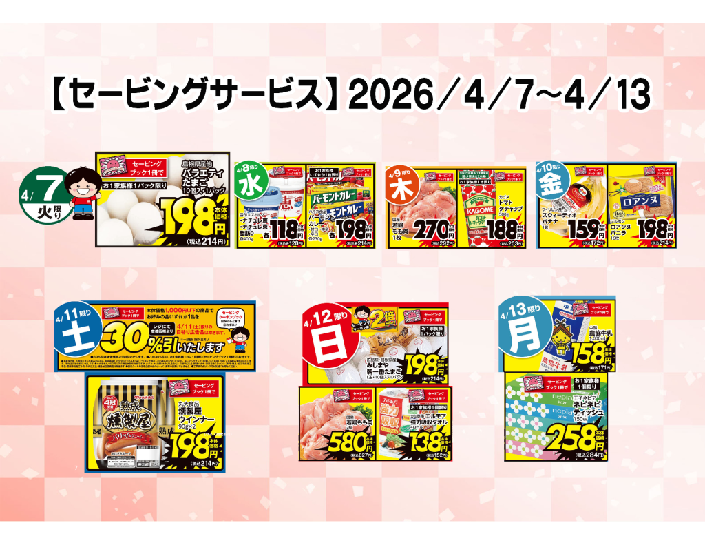 又セービングクーポン1冊でもお得なお買物ができますのでご利用下さいませ。