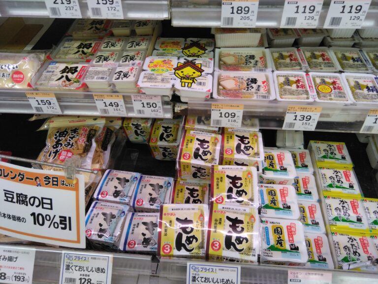 本日は、豆腐が1割引きのお買い得になっております。夕食に豆腐のメニューはいかがでしょうか。ぜひこの機会にお買い求め下さいませ。ご来店お待ちしております。