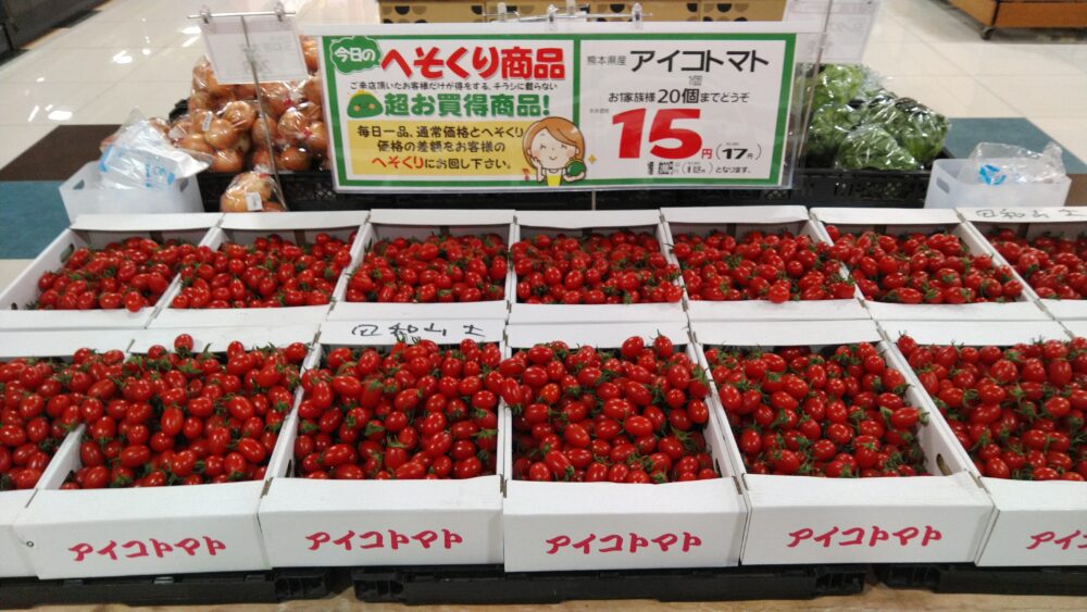 こんにちは、みしまや田和山店の農産部門です 。今日のおすすめは、アイコトマトです。ぜひ、ご利用くださいませ。