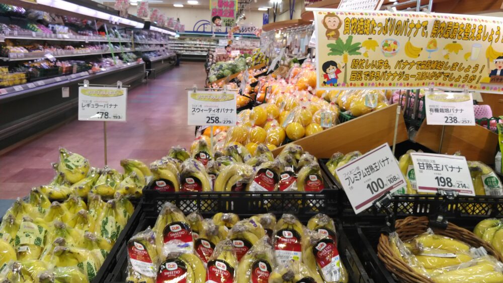 本日おすすめ果物バナナ。食物繊維たっぷり毎日の栄養補給にいかがでしょうか?朝食におやつにもおすすめです。是非ご賞味くださいませ。ご来店お待ちしております。