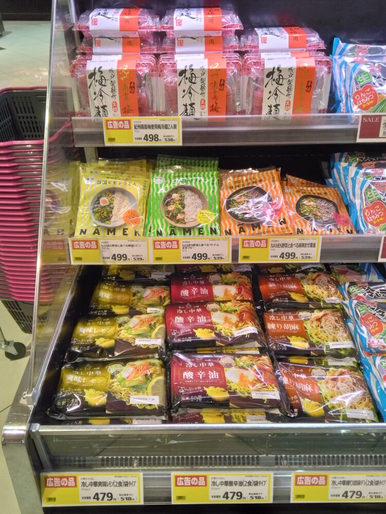 こんにちは!春日店日配です。只今ちゅるちゅる麺フェアを開催しております。さっぱりした味わいの冷やし中華など期間限定でお安くなっております。