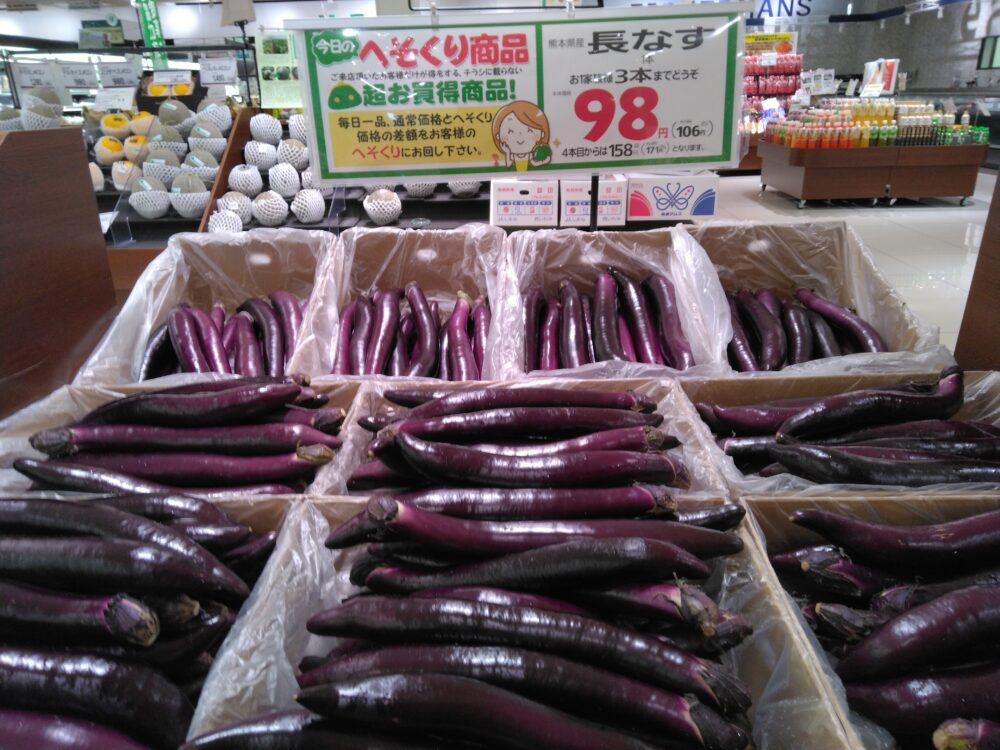 東川津店本日のへそくり商品は長なすです。加熱するとトロトロで美味しいですよね~