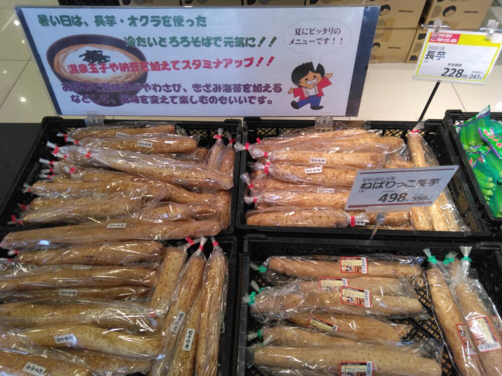 長芋1本が228円(税込価格247円)です。焼いたりすったりと大活躍です。ぜひご来店お待ちしております。