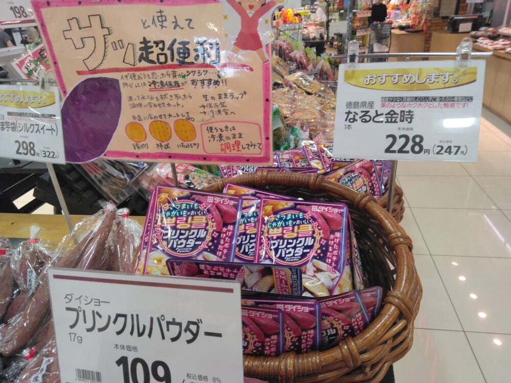 本日田和山店のおすすめは、さつまいもやじゃがいもを素揚げしてかけるだけでクセになる味わいのプリンクルパウダーです。オニオン・ガーリックなどの旨みにチーズの風味を効かせパセリで彩りよく仕上げたパウダーで、揚げたポテトにかけるだけで甘じょっぱくてクセになります。お子様のおやつに、お酒のつまみにぜひお使いください。
