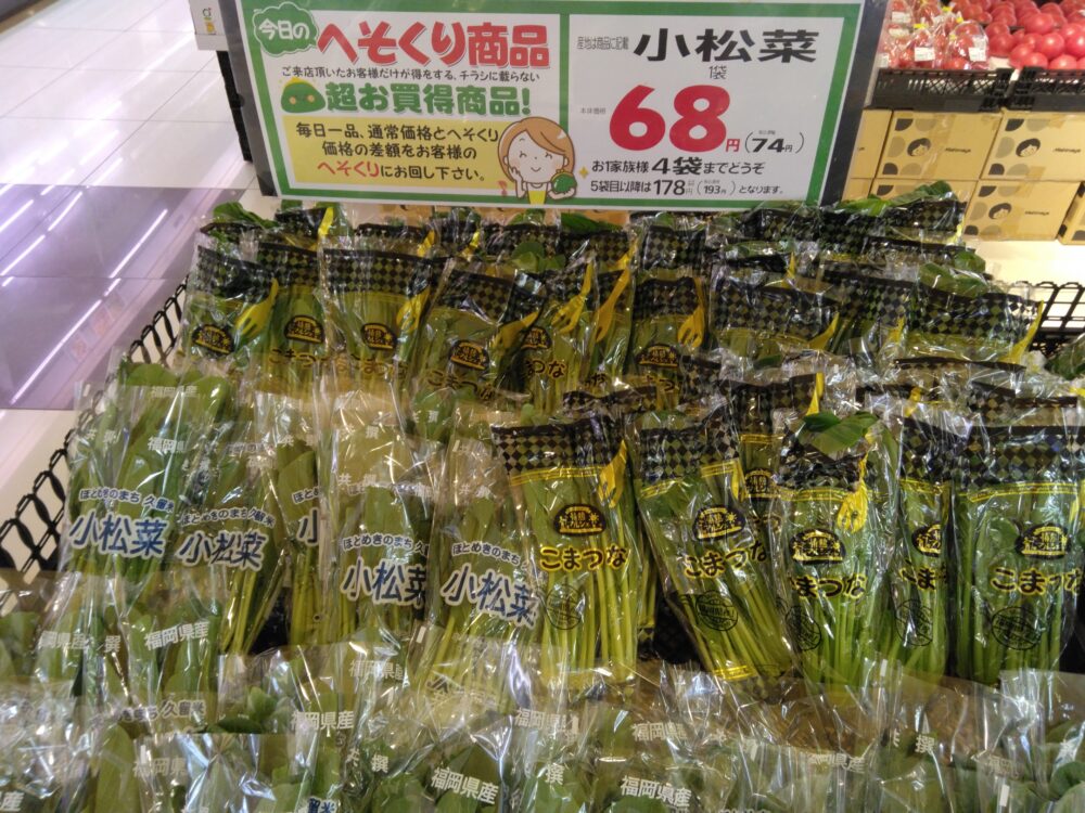 本日のおすすめは小松菜です!炒め物や和え物がおすすめです!ぜひお買い求め下さいませ!