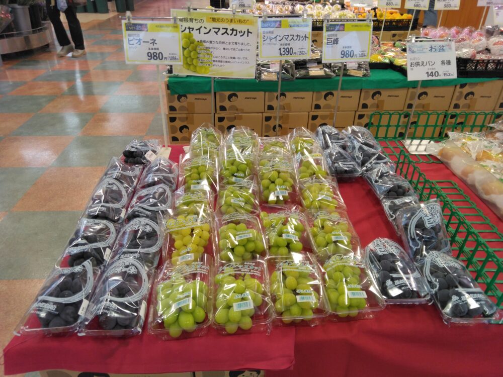 こんにちは楽山店です。もうすぐお盆です。準備の方はいかがでしょうか。本日おすすめシャインマスカット、お盆にはかかせない島根県産果物です。お供え物に家族みんなのご馳走にいかがでしょうか。他お盆準備多数取り揃えております。是非みしまやでお買い求め下さいませ。ご来店お待ちしております。
