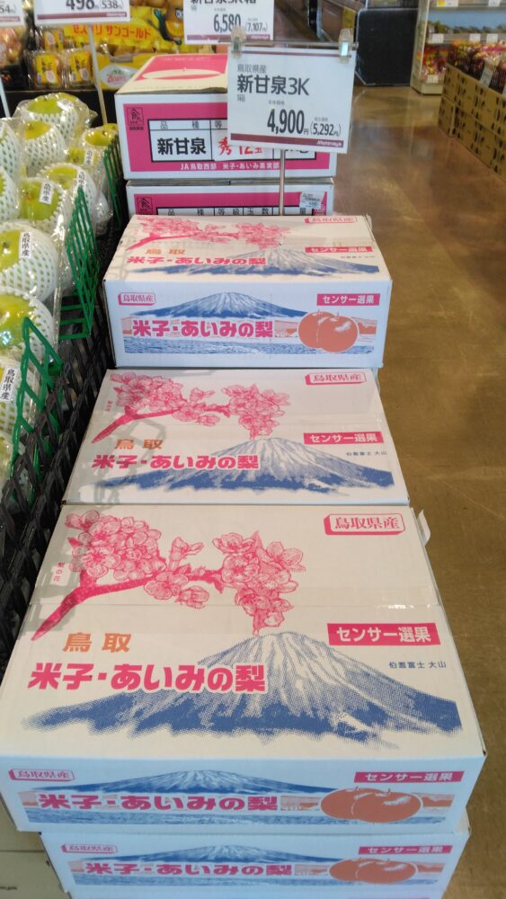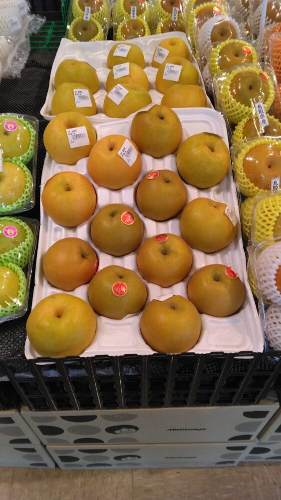こんにちはみしまや学園店果物コーナーです。 今年も美味しい梨が入荷しました、甘くてシャキシャキの歯触りみずみずしい毎年好評の新甘泉も出てまいりました。 是非この機会にご賞味くださいませ。