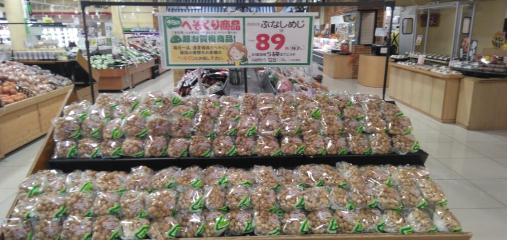 こんにちは、みしまや田和山店農産部門です。今日のおすすめは【ぶなしめじ】です。ぜひお買い求めくださいませ!