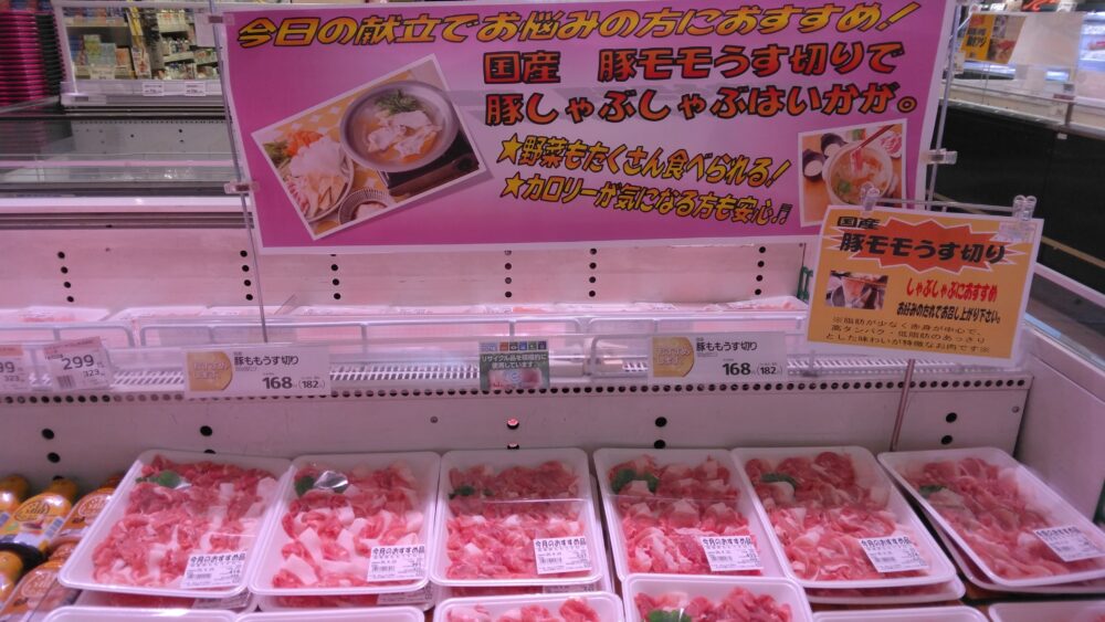 こんにちはみしまや学園店です。 朝、夕少しづつ涼しさを感じるようになりました そろそろお鍋が夕食のメニューに加わりそうですね 美味しい豚バラ、豚ももを使って、しゃぶしゃぶなどいかがでしょうか この週末、お買い得になっています、是非この機会にお買い求めくださいませ。 ご来店お待ちしております。