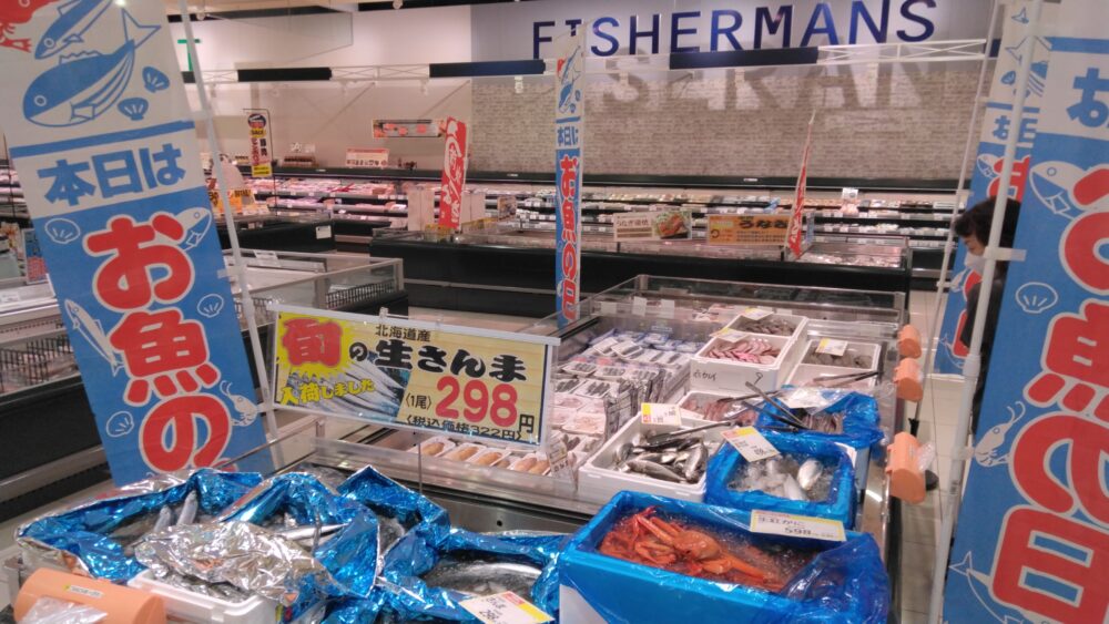 こんにちは!みしまや東川津鮮魚コーナーです! 本日は土曜日!お魚コーナーではお魚市を行っております!さんまをはじめとしたおすすめ品がいっぱい!ぜひお買い求めくださいませ!