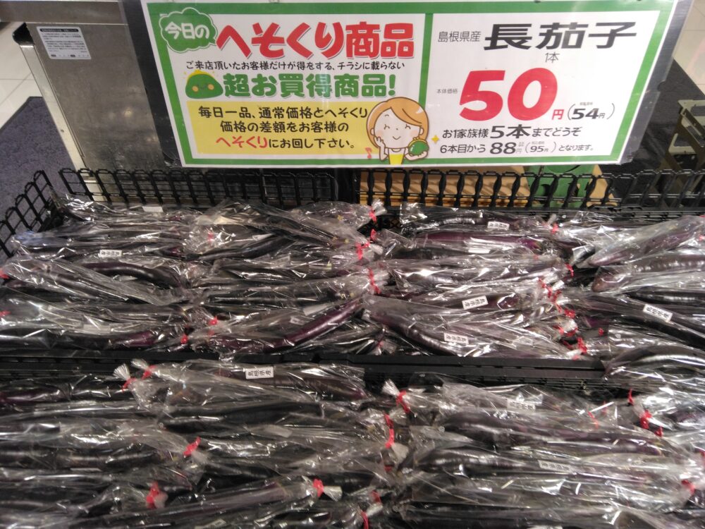 本日のおすすめは長なすです!炒め物やお味噌汁の具にいかがでしょうか!ぜひお買い求め下さいませ!