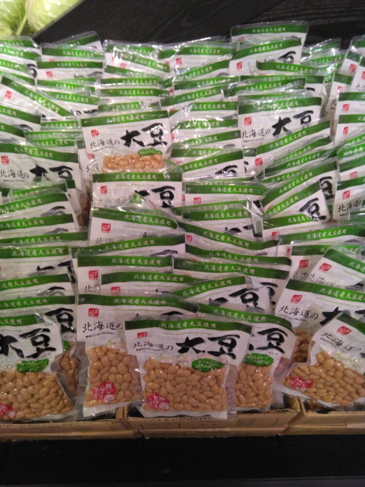 本日は大豆の水煮がお買い得です。ひじきとの煮物や鶏肉とトマトを使った洋風煮込み、ハンバーグ、味噌汁、カレーなどにおすすめです。