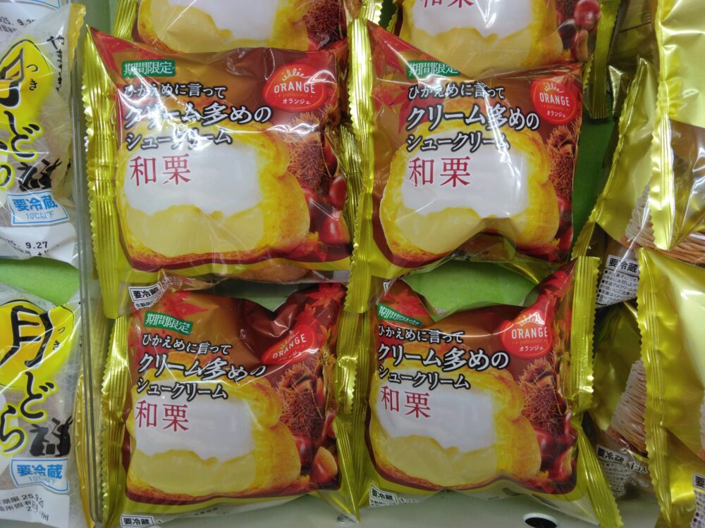 今日はシュークリームのご紹介です。秋の味覚の和栗を使っていて甘くて美味しいですよ。しかもクリームたっぷり!食べ応えのあるシュークリームはいかがでしょうか?(^^)