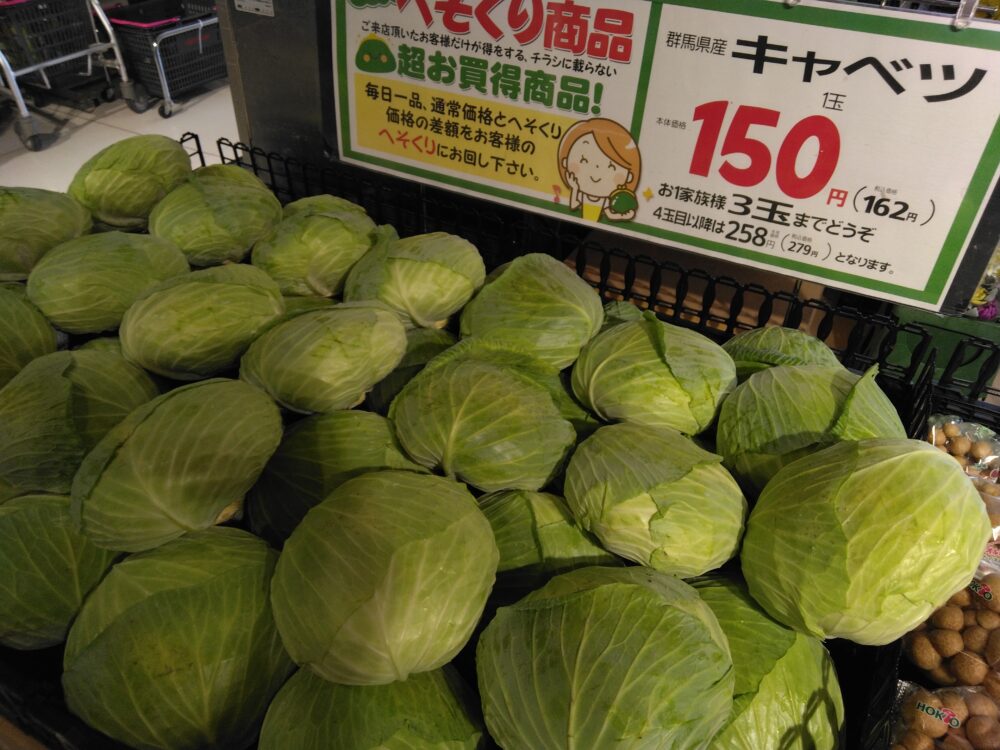 本日のおすすめはキャベツです!炒め物がおすすめです!ぜひお買い求め下さいませ!