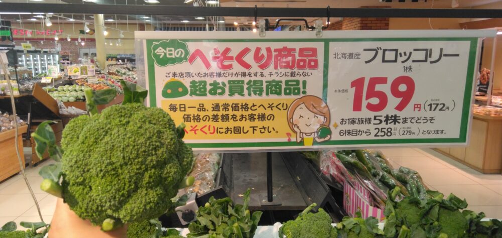 こんにちは、みしまや田和山店農産からのおすすめは【ブロッコリー】です。しっかりサイズがお買い得です!朝晩は寒くなりましたね。煮込み料理などにいかがでしょうか?ぜひお買い求めくださいませ!