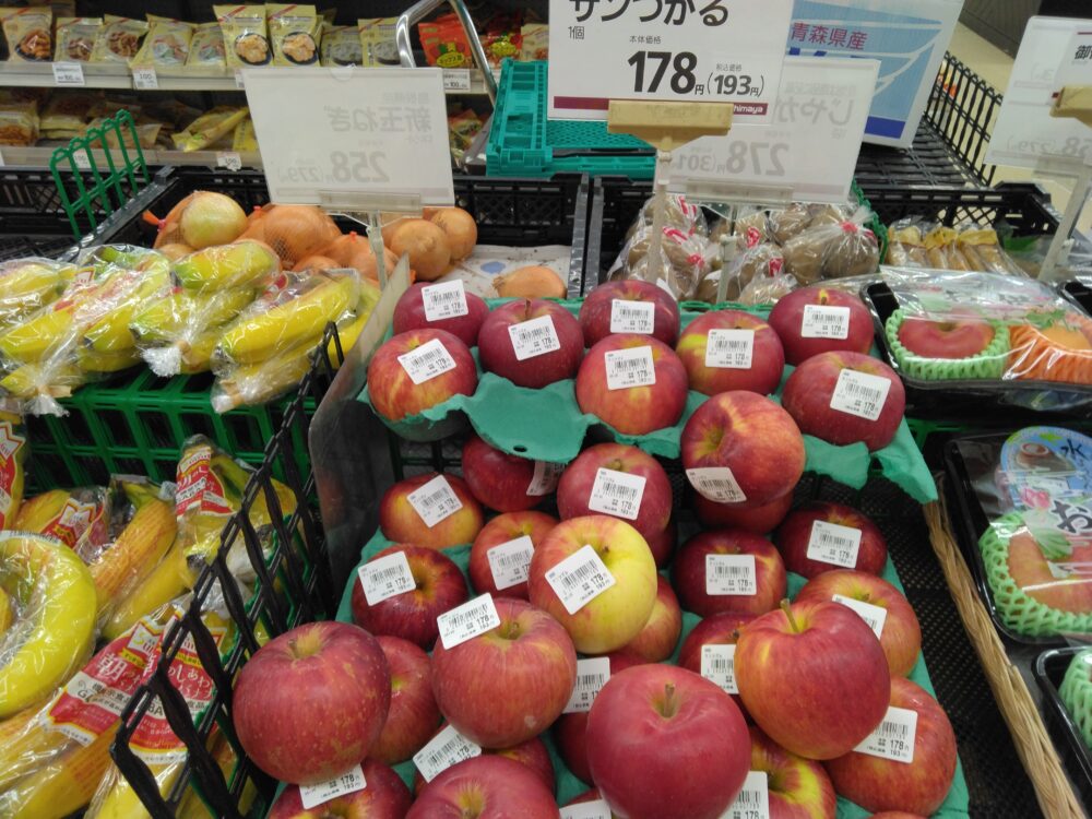 本日のおすすめは、青森県産のサンつがるをおすすめします、甘くて美味しいです、ぜひお買い求めくださいませ。