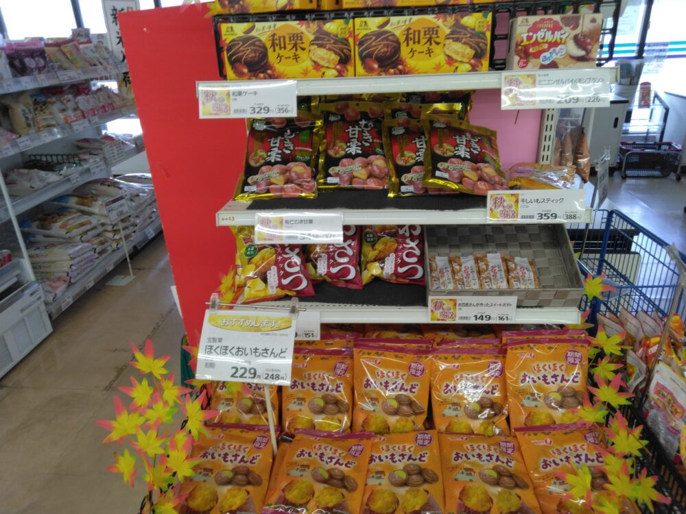 こんにちは八束店です。秋の味覚サツマイモを使ったお菓子です。ぜひ秋の味をお楽しみくださいませ。