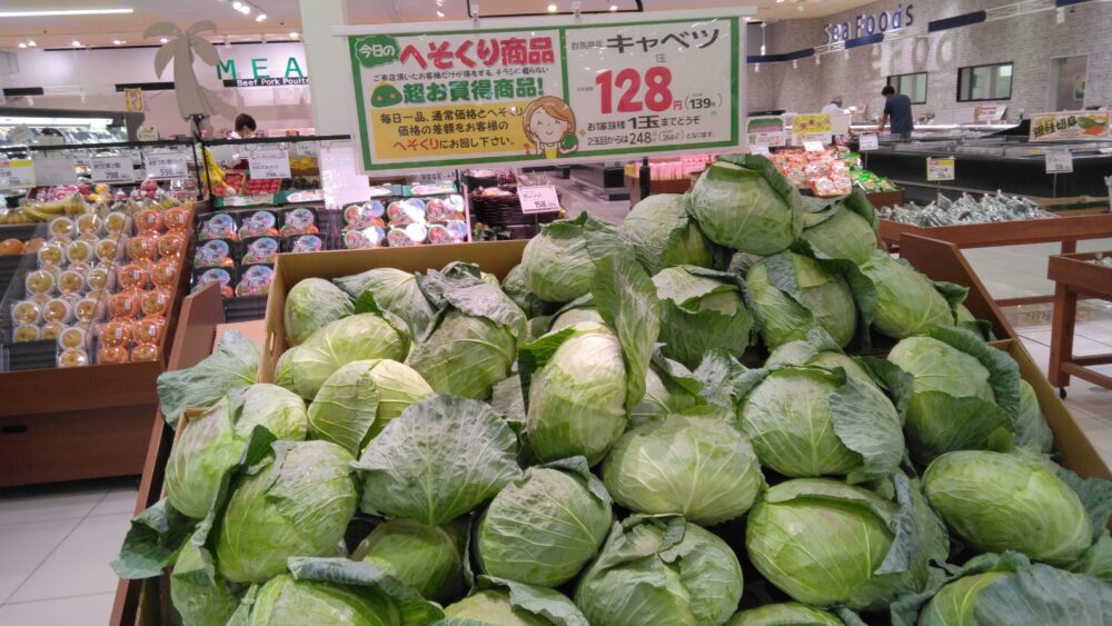 東川津店本日のへそくり商品はキャベツです。炒め物や鍋物、サラダにどうぞ!