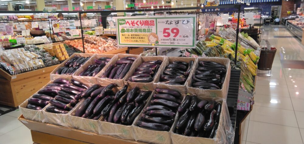こんにちは、田和山店農産部門です。本日のおすすめはなすび1本です!麻婆なすや天ぷらなどにいかがでしょうか。ぜひお買い求めくださいませ。