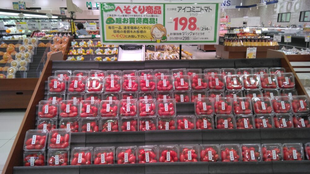東川津店、今日のへそくりはアイコミニトマトです !栄養満点でお弁当のおかずやちょっとした彩りにぴったり♪ この機会に是非お買い求めくださいませ!