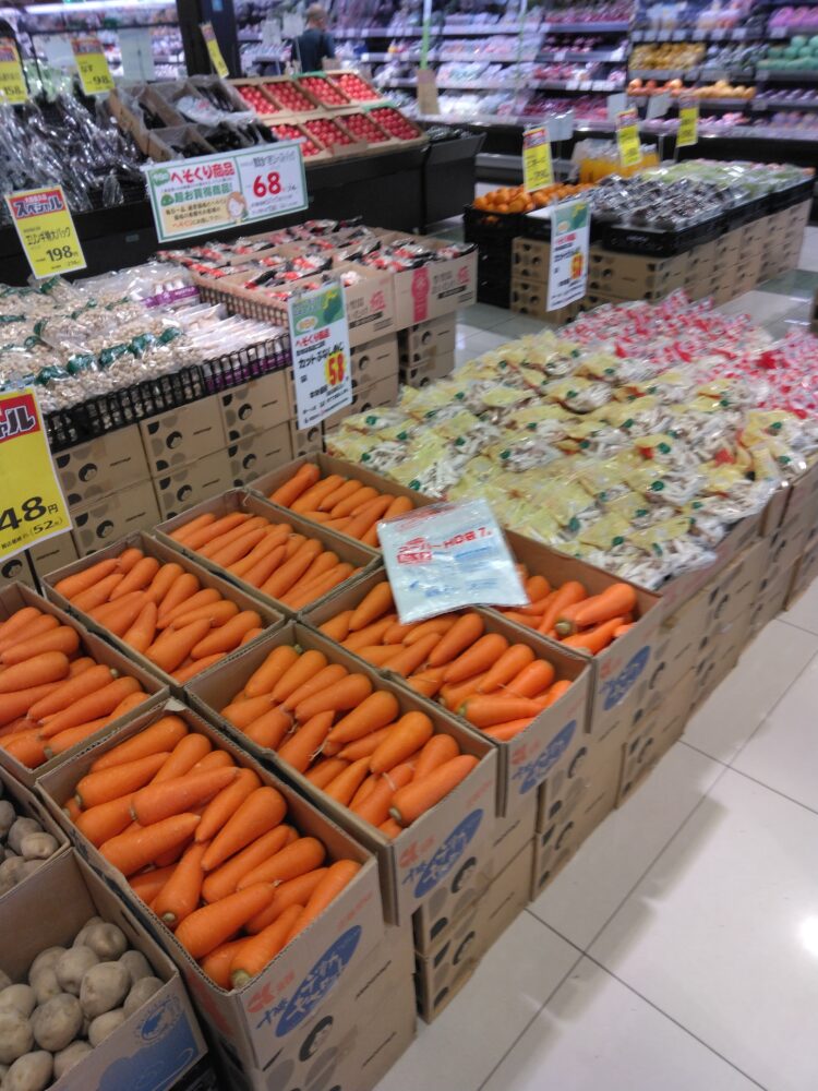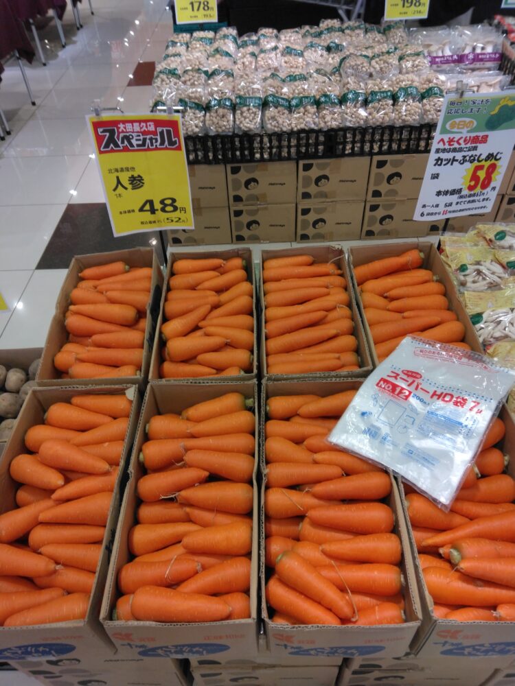 本日は人参がお買い得です。シチューやカレー、豆乳を使ったスープなどのあったかメニューにどうぞ。