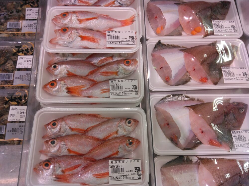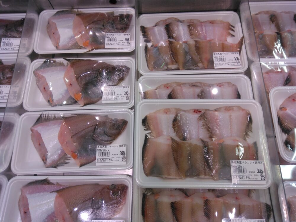 本日の楽山店おすすめ商品は、鮮魚コーナーのエテカレイとベラカレイです! 煮付けにピッタリのカレイの他にもノドグロ等の底引き魚もご用意しております! 是非お買い求め下さいませ!